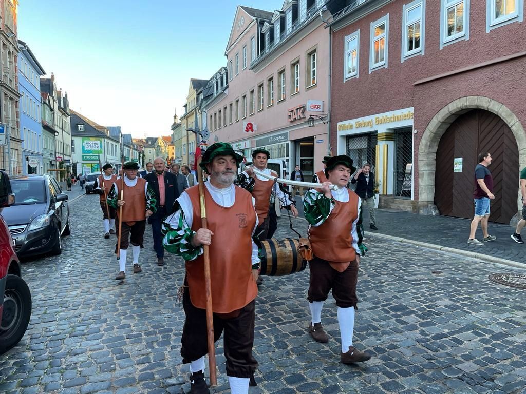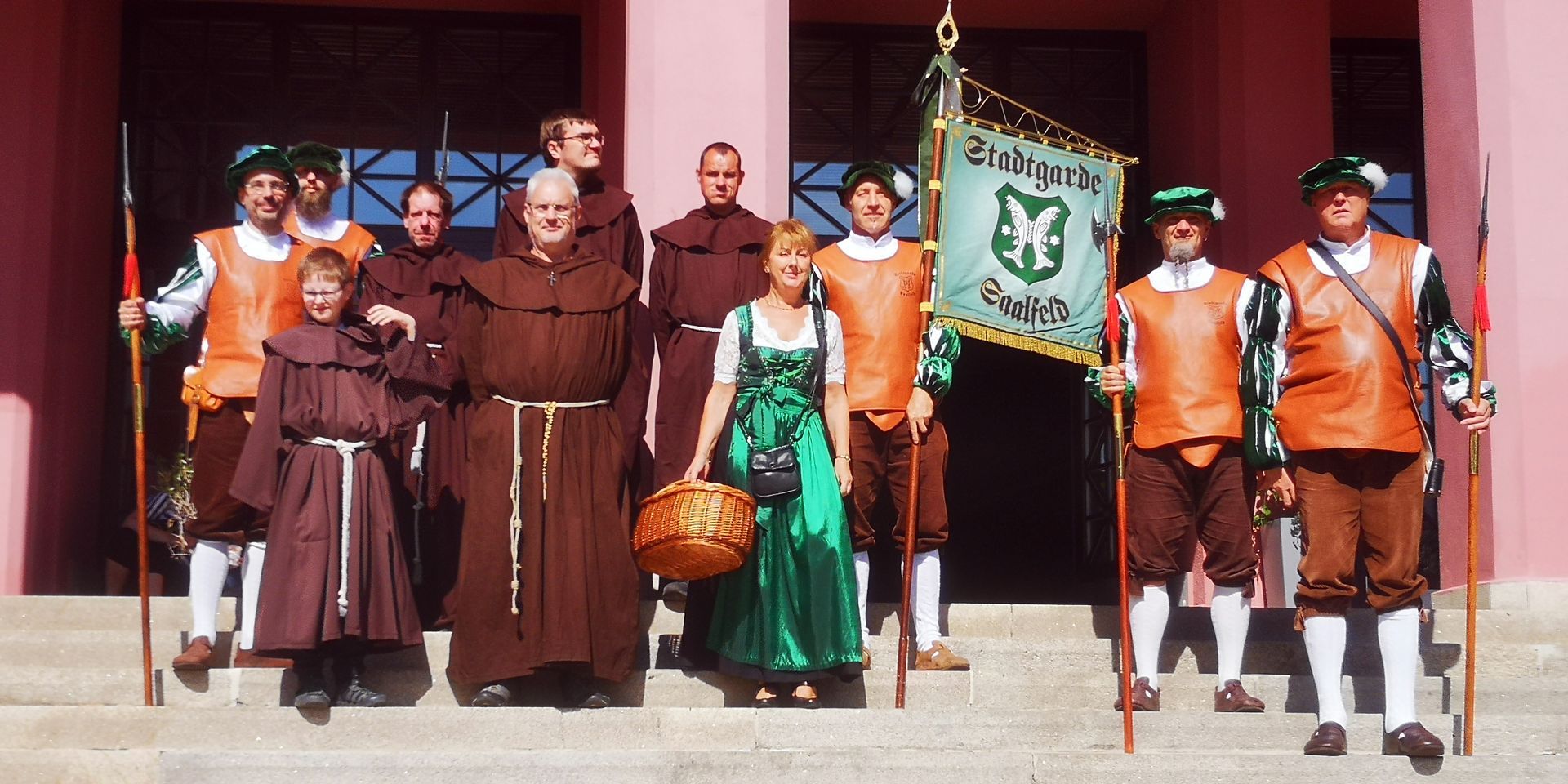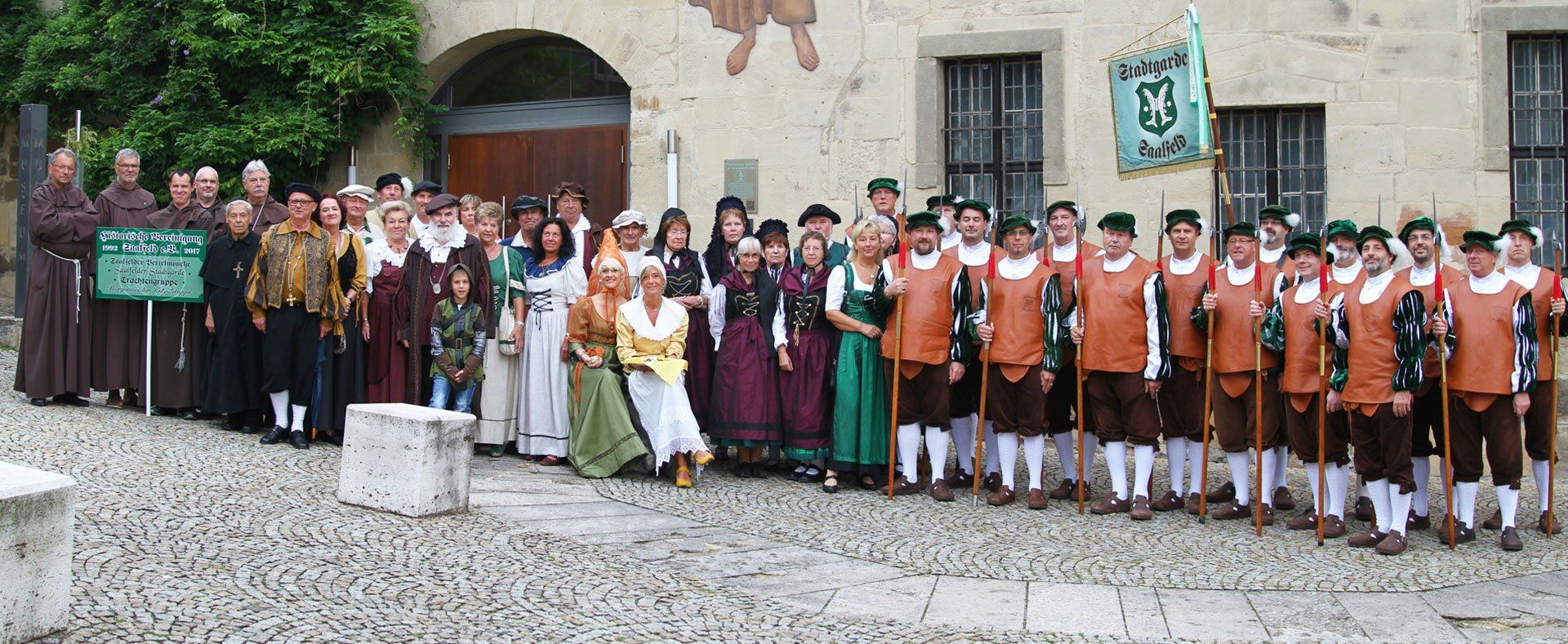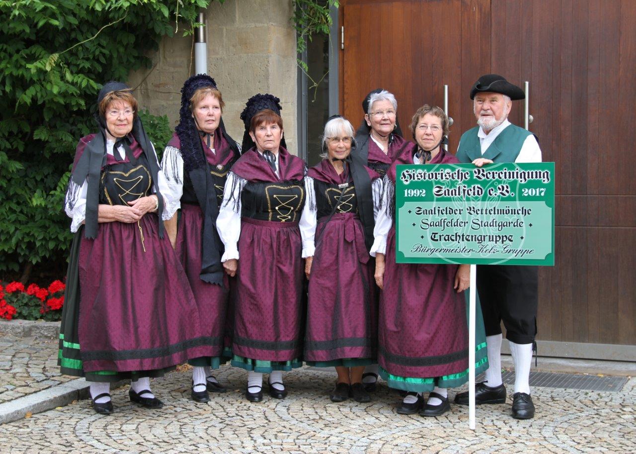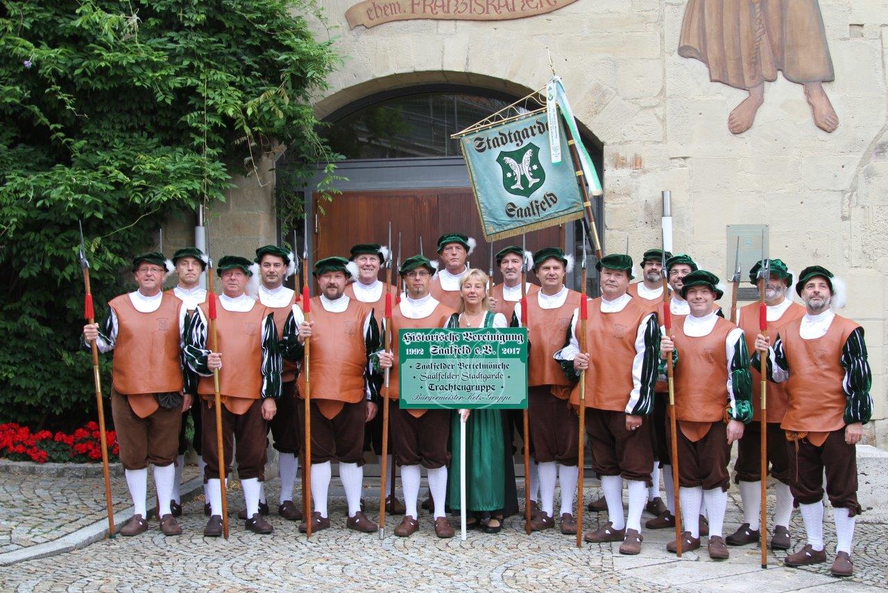 Willkommen bei der Historischen Vereinigung der Stadt Saalfeld an der Saale. Wir möchten Sie einladen mit uns in längst vergangene Zeiten unser Stadt einzutauchen. Wir, das sind die mittelalterliche Stadtgarde, die Bürgermeister Kelz Gruppe, die Bettelmönche und die Trachtengruppe der Historischen Vereinigung. Alle Mitglieder wechseln gelegentlich in die Zeit des Mittelalters, um vor allem den Gästen unserer Stadt die Geschichte der steinernen Chronik Thüringens näher zu bringen.