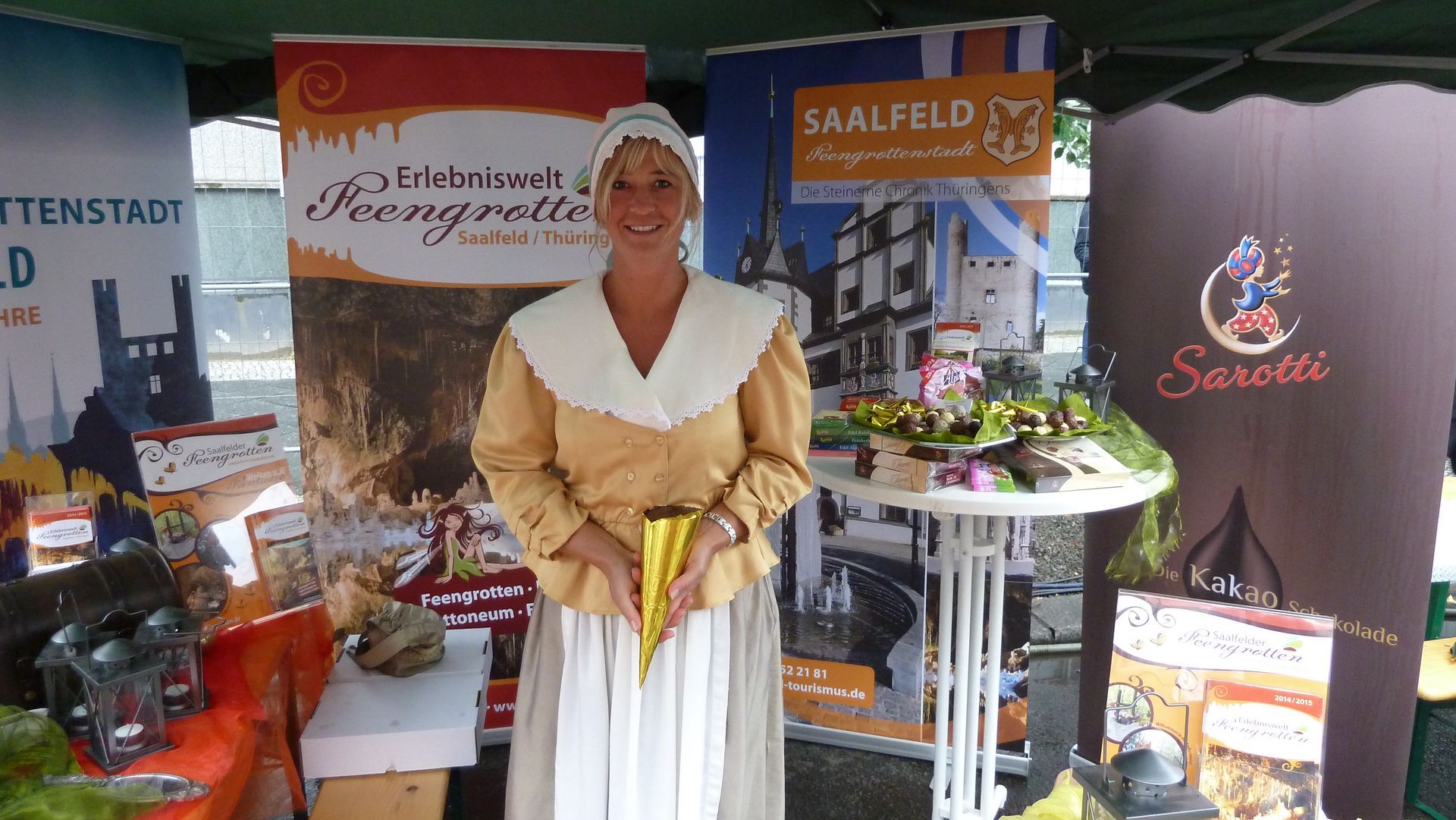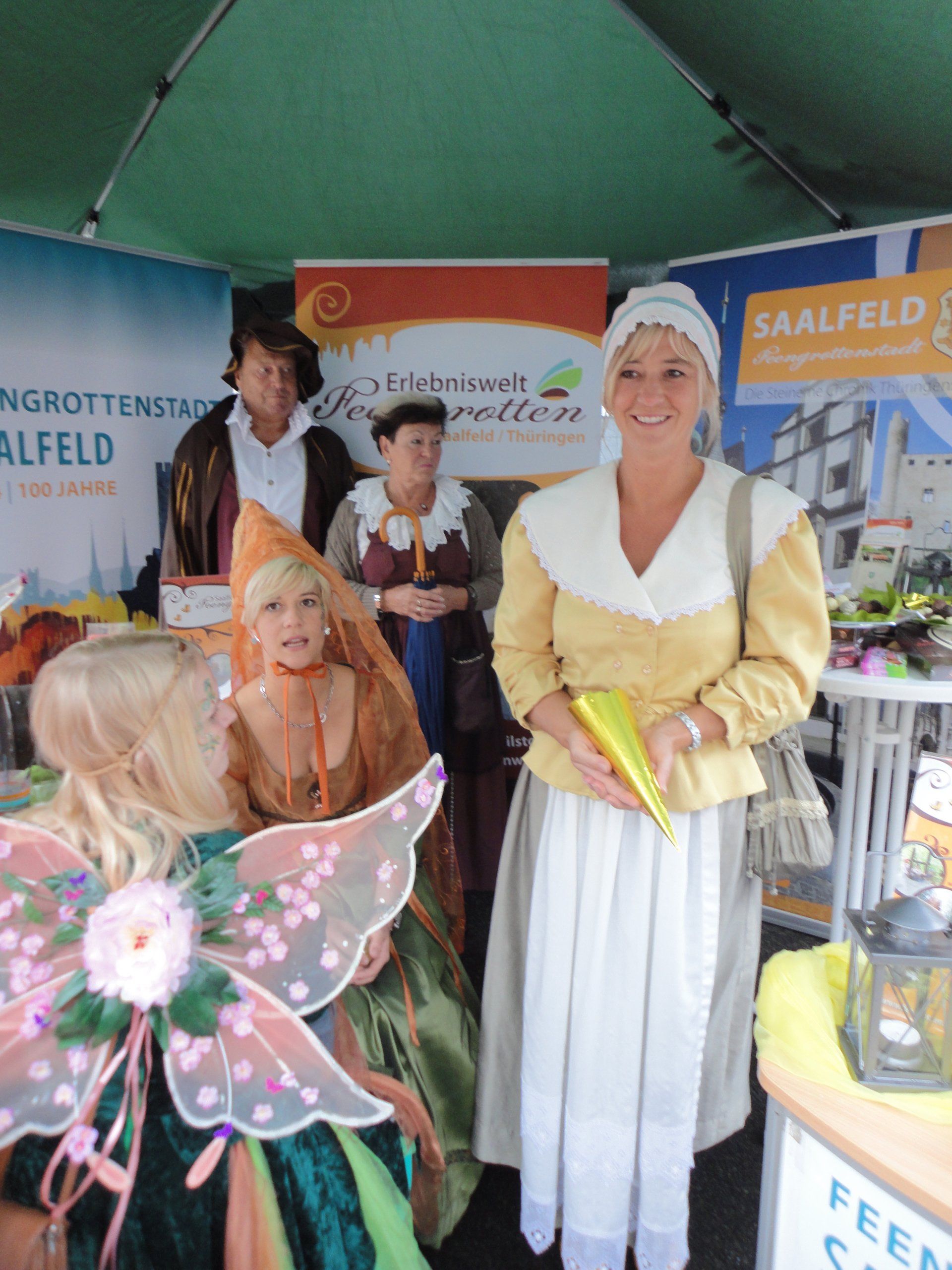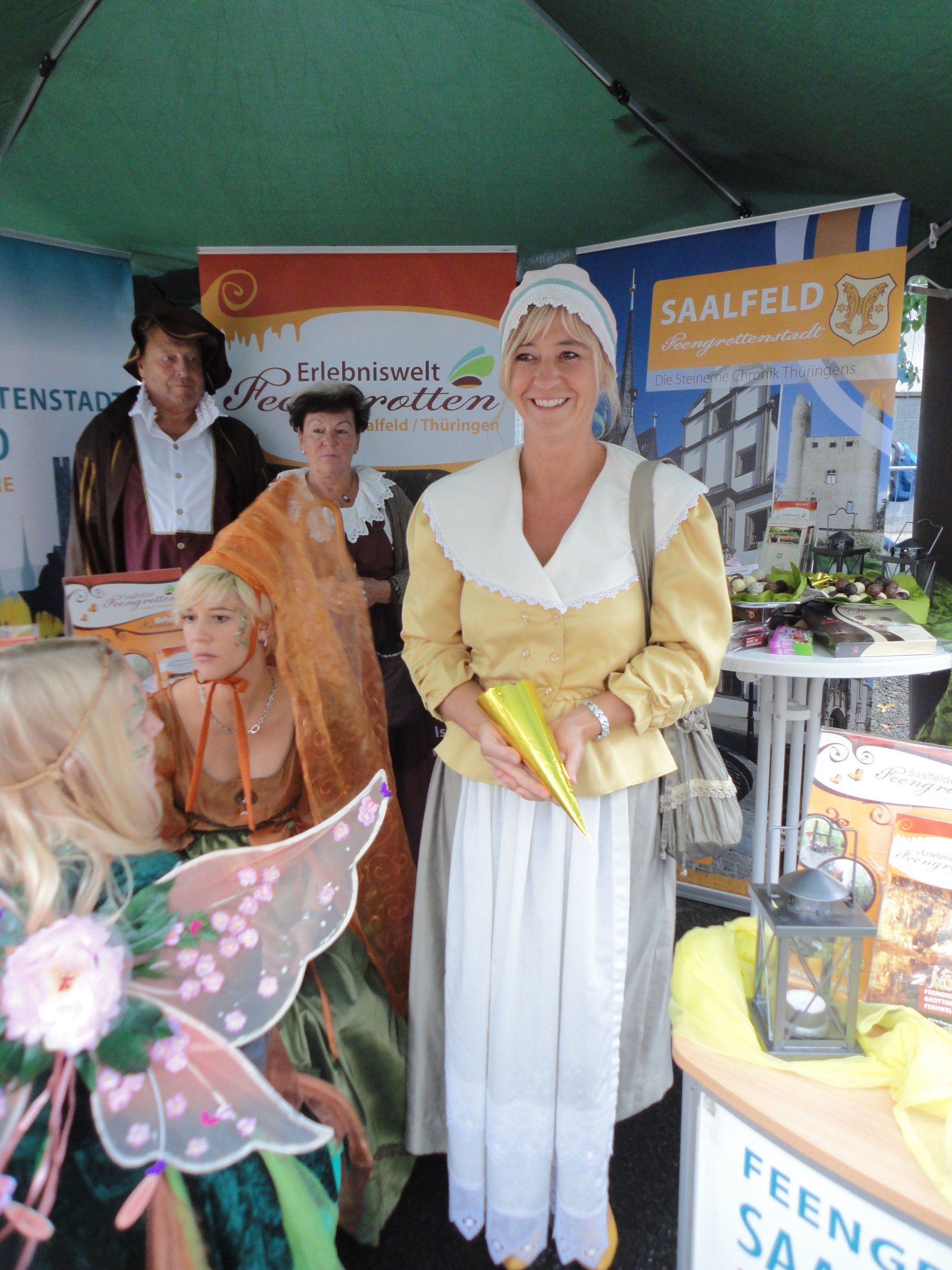 Auch die 100-jährige Schokoladentradition am Standort Saalfeld führte 2002 zur Aufnahme eines „Schokoladenmädchen“ in unseren Verein. Gleichzeitig sollte auch eine Gottenfee als zauberhafte Botschafterin Saalfeld repräsentieren.
